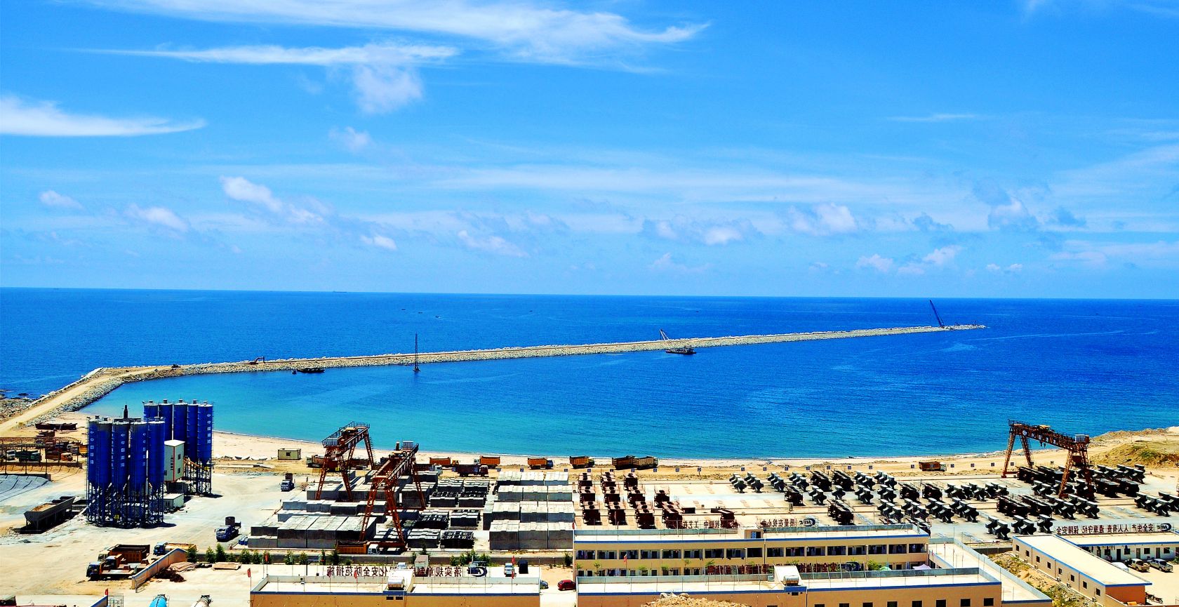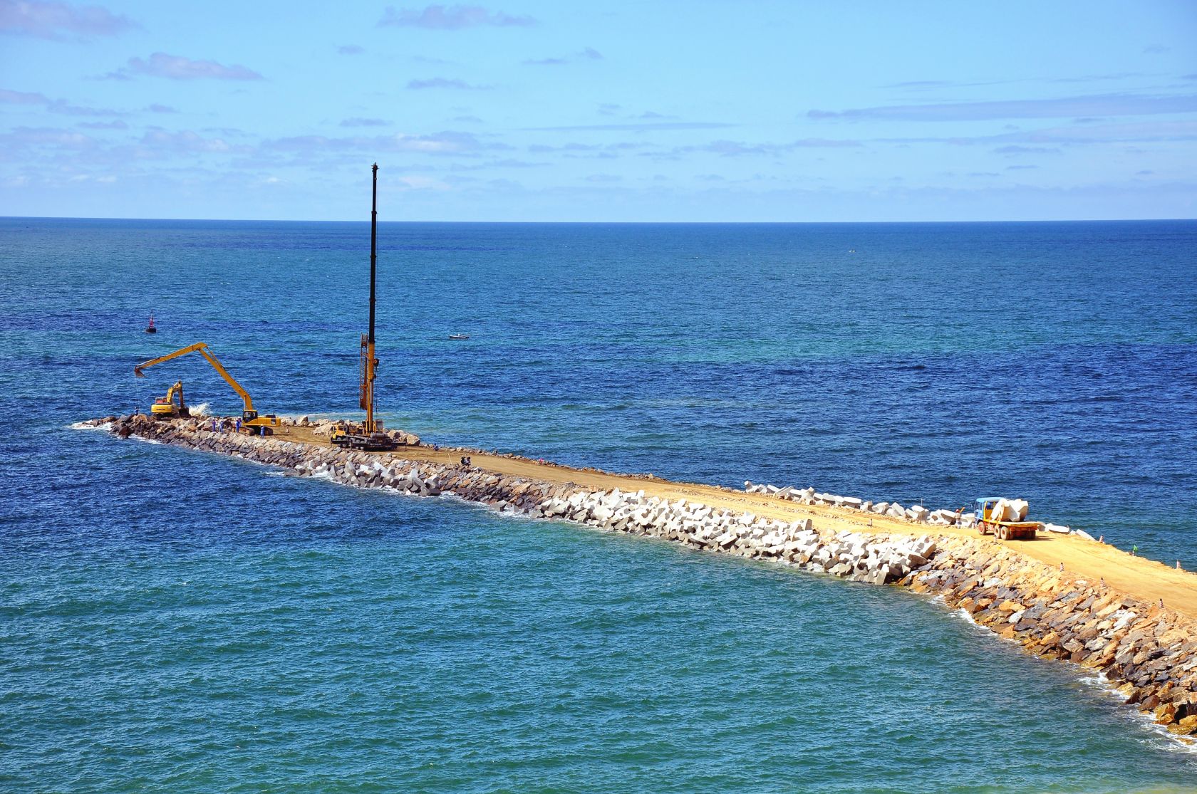 博賀新港區(qū)東防波堤建設(shè)現(xiàn)場(chǎng)