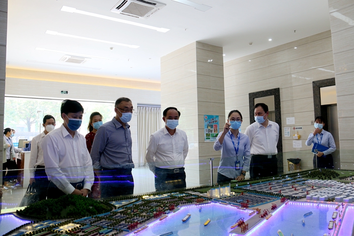 楊文波一行觀摩了博賀新港區(qū)總體規(guī)劃沙盤,詳細(xì)了解了博賀新港區(qū)總體規(guī)劃和在建的粵西LNG造陸、30萬噸原油碼頭、10萬噸級(jí)成品油碼頭等一批省、市重點(diǎn)項(xiàng)目的推進(jìn)情況。