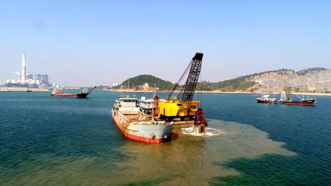 “放!” 轟鳴聲中,隨著項目管理人員一聲令下,東區(qū)化工碼頭項目的海上作業(yè)船穩(wěn)穩(wěn)地放下抓斗,開始項目基槽開挖作業(yè)。