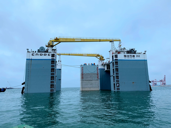 6月1日晚上8時(shí),博賀新港區(qū)項(xiàng)目建設(shè)傳來喜訊——茂名港博賀新港區(qū)東區(qū)化工碼頭項(xiàng)目第一個(gè)沉箱順利安裝完成!