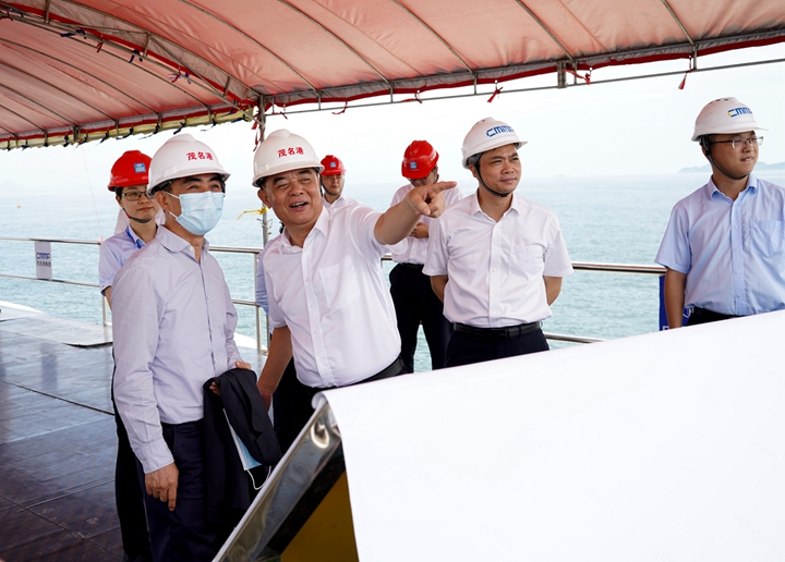 陳林夕一行深入到茂名港博賀新港區(qū),實地考察了茂名港博賀新港區(qū)各省市重點項目的推進情況?疾熘校惲窒Σ┵R新港區(qū)宏大的總體規(guī)劃和蓬勃的發(fā)展態(tài)勢表示贊嘆。他表示,港口建設(shè)事關(guān)茂名市經(jīng)濟建設(shè)的百年大計,茂名港集團作為市屬企業(yè)的“排頭兵”,發(fā)展前景十分廣闊,擁有較好的發(fā)展?jié)摿皡^(qū)位資源優(yōu)勢。他希望,以本次調(diào)研為契機,充分發(fā)揮國家開發(fā)銀行金融服務(wù)優(yōu)勢,以茂名港集團重點項目為抓手,建立緊密的合作關(guān)系,提供契合集團發(fā)展方向的創(chuàng)新金融服務(wù),攜手茂名港集團實現(xiàn)互利共贏,共同推動茂名地區(qū)經(jīng)濟發(fā)展。