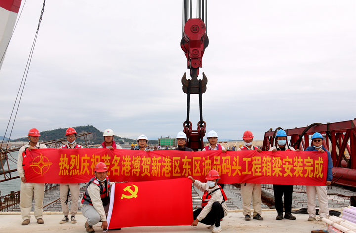 “對準(zhǔn),好的,到位了,開始落梁!” 10月22日上午10時,隨著現(xiàn)場施工負(fù)責(zé)人一聲令下,茂名港博賀新港區(qū)東區(qū)油品碼頭工程最后一件箱梁順利安裝,該工程公用管廊箱梁安裝作業(yè)全部完成!