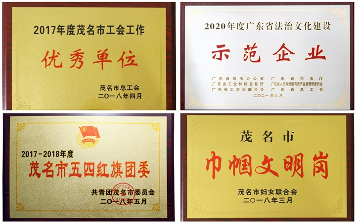 ▲集團(tuán)榮譽(yù)獎(jiǎng)牌(摘選) 幾年來(lái),集團(tuán)工會(huì)榮獲“茂名市工會(huì)工作優(yōu)秀單位”稱(chēng)號(hào),集團(tuán)財(cái)務(wù)部女職工榮獲“茂名市巾幗文明崗”稱(chēng)號(hào);集團(tuán)團(tuán)委成立青年志愿者服務(wù)隊(duì),助力雙創(chuàng)工作,連續(xù)三年榮獲“茂名市五四紅旗團(tuán)委”稱(chēng)號(hào)。集團(tuán)憑借系列企業(yè)文化建設(shè)成果,先后榮獲 “中國(guó)企業(yè)文化建設(shè)典范企業(yè)”“廣東省先進(jìn)集體”“廣東省優(yōu)秀企業(yè)”“廣東省企業(yè)文化建設(shè)最佳實(shí)踐單位”“廣東省法治文化建設(shè)示范企業(yè)”等榮譽(yù),被譽(yù)為茂名市屬?lài)?guó)有企業(yè)的標(biāo)桿與典范。 結(jié)語(yǔ) 十年積跬步,足下至千里。回眸十年的非凡征程,茂名港人矢志艱苦奮斗,勇于擔(dān)當(dāng)作為,爭(zhēng)當(dāng)茂名向海而興排頭兵,在茂名經(jīng)濟(jì)發(fā)展史上留下堅(jiān)實(shí)的足印。