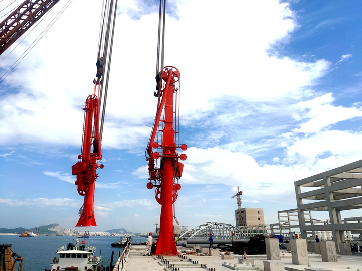 10月17日上午9時(shí),隨著起重工一聲哨響,茂名港博賀新港區(qū)東區(qū)油品碼頭項(xiàng)目首臺(tái)大型設(shè)備輸油臂通過(guò)400噸浮吊的精準(zhǔn)吊裝,圓滿完成首臺(tái)設(shè)備吊裝任務(wù)。