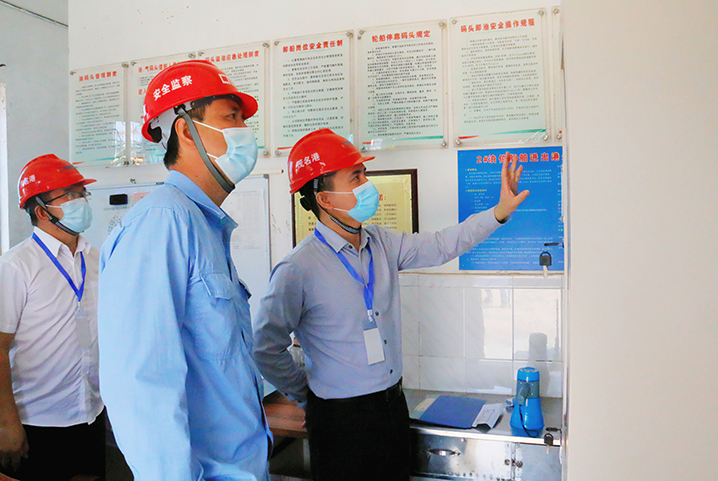 在中油王港及港口經(jīng)營公司,督導組一行認真檢查生產(chǎn)作業(yè)及疫情防控各項保障措施落實情況,并詳細向一線工作人員詢問工作流程、人員值守情況及生活狀況。