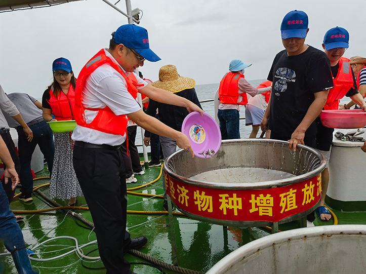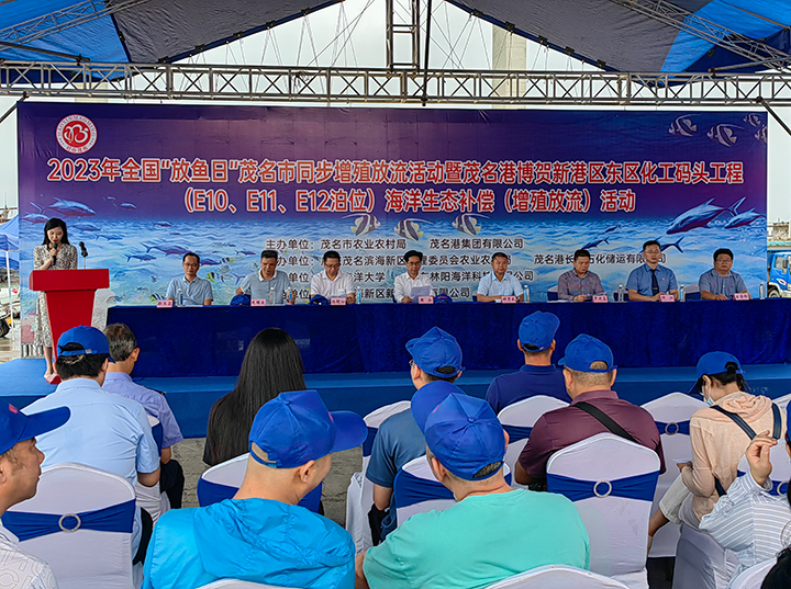 6月6日,茂名市農(nóng)業(yè)農(nóng)村局與茂名港集團聯(lián)合在茂名市放雞島人工魚礁區(qū)開展2023年全國 “放魚日” 茂名市同步增殖放流活動暨茂名港博賀新港區(qū)東區(qū)化工碼頭工程海洋生態(tài)補償(增殖放流)活動。廣東茂名濱海新區(qū)黨工委副書記黃永,茂名市農(nóng)業(yè)農(nóng)村局副局長鐘秀威,茂名市自然資源局三級調(diào)研員羅進鑫,茂名市人民檢察院第四檢察部主任仲江,茂名市生態(tài)環(huán)境局自然生態(tài)保護科科長朱國慶,茂名港集團黨委委員、副總裁楊超燦及有關單位約百余人參加了活動。