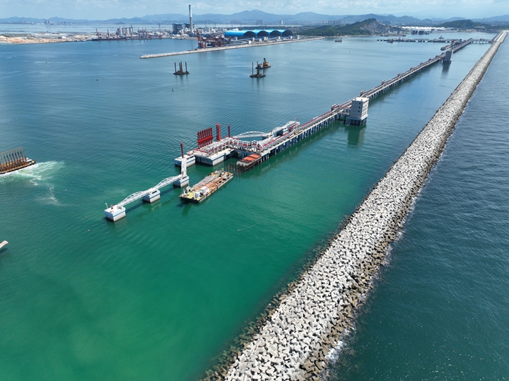 茂名港集團(tuán)30萬(wàn)噸級(jí)原油碼頭工程是廣東省重點(diǎn)項(xiàng)目工程,是茂名港進(jìn)一步提升港口等級(jí)的標(biāo)志性工程,對(duì)完善博賀新港區(qū)碼頭布局、豐富港口服務(wù)功能、提升港口競(jìng)爭(zhēng)力具有重要意義。項(xiàng)目位置距離口門僅690米,受海上涌浪影響較大,沉箱出運(yùn)安裝施工難度大,安全風(fēng)險(xiǎn)高。經(jīng)項(xiàng)目部精密策劃,專項(xiàng)施工方案通過(guò)專家評(píng)審,針對(duì)性地進(jìn)行技術(shù)、安全、驗(yàn)收程序交底,有序推進(jìn)各項(xiàng)施工作業(yè),確保施工安全。