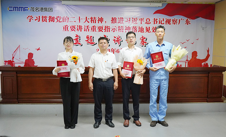 6月27日,茂名港集團(tuán)舉行“學(xué)習(xí)貫徹黨的二十大精神,推進(jìn)習(xí)近平總書記視察廣東重要講話重要指示精神落地見效”主題演講比賽決賽。集團(tuán)黨委副書記、總裁肖炳璋,副總裁李昱祺出席活動(dòng),并為獲獎(jiǎng)選手頒發(fā)了榮譽(yù)證書。