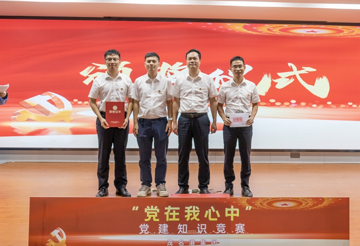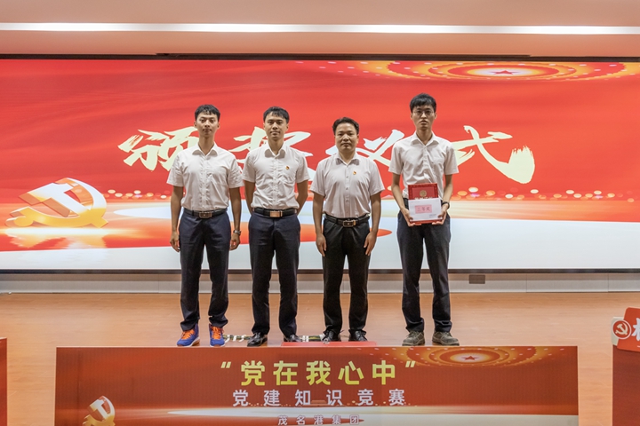 機(jī)關(guān)先鋒隊、物業(yè)勇闖隊、港口沖鋒隊、王港挑戰(zhàn)隊榮獲優(yōu)秀獎 在陣陣掌聲中,集團(tuán)領(lǐng)導(dǎo)為獲獎隊伍頒發(fā)了榮譽(yù)證書并進(jìn)行合影留念。 整場競賽精彩紛呈,氣氛熱烈,選手之間通力合作,場上比分你追我趕,大家“賽”出了水平,“競”出了風(fēng)采,充分體現(xiàn)了茂名港人積極奮進(jìn),努力拼搏的精神。集團(tuán)黨員干部以此為契機(jī),養(yǎng)成自學(xué)、好學(xué)的習(xí)慣,持之以恒、與時俱進(jìn)的學(xué)習(xí),避免知識老化、思想僵化、能力退化,在各自的崗位上掌握新方法、增長新才干、解決新問題,把習(xí)近平新時代中國特色社會主義思想轉(zhuǎn)化為堅定理想、錘煉黨性和指導(dǎo)實踐、推動工作的強(qiáng)大力量,營造了全集團(tuán)風(fēng)清氣正、積極向上、斗志昂揚(yáng)的干事氛圍。