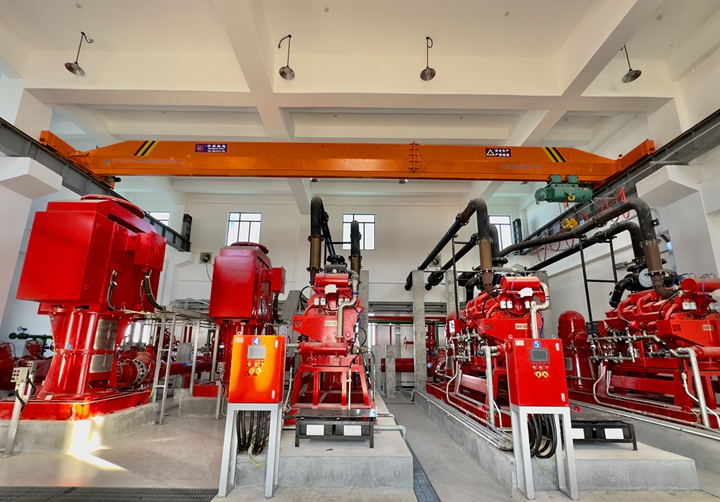 據(jù)悉,本次油品碼頭項目在公用工作樓設(shè)置了“三常三備”消防泵組,即三臺常用的電動消防泵和三臺備用的柴油消防泵,通過架設(shè)在公共管廊上聯(lián)通公用工作樓消防泵房和碼頭泊位的消防炮塔的消防管道,為博賀新港區(qū)東區(qū)13個液體化工品碼頭提供消防海水,這是整個港區(qū)東區(qū)消防系統(tǒng)的核心組成部分,對保障碼頭的安全生產(chǎn)運營的有著重大意義。電動消防泵和柴油消防泵兩個重要消防設(shè)備均采用 UL/FM 雙認(rèn)證企業(yè)的產(chǎn)品,其產(chǎn)品技術(shù)水平和認(rèn)證參數(shù)范圍,在國內(nèi)乃至全球同行中均處于領(lǐng)先水平。該消防泵采用了10KV高壓供電,功率達到800KW,多級離心長軸的結(jié)構(gòu)使得整個泵組高度達17米、重量達10噸。矗立在碼頭前沿的兩座高達17米的消防炮塔,同時擁有電動消防水炮和電動泡沫炮,具備就地操控、無線操控和消防控制室操控三種操控方式,并且炮塔的噴射半徑達100米,足以應(yīng)付海上出現(xiàn)的各種險情。 在單機試運行前,油品碼頭黨支部充分發(fā)揮項目一線戰(zhàn)斗堡壘作用,組織業(yè)主單位生產(chǎn)部、施工單位、監(jiān)理單位、設(shè)備廠家對機泵設(shè)備單機試運行方案進行了數(shù)輪嚴(yán)格的會審,研究討論了方案內(nèi)容存在的問題并提出了修改意見和建議,并對方案中涉及到的重點工作、具體事項進行了安排。