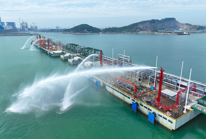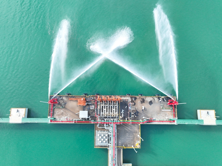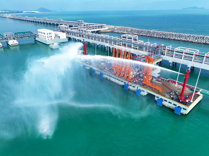 2023年12月27日,隨著8條“水龍”噴涌而出,博賀新港區(qū)東區(qū)化工碼頭消防系統(tǒng)聯(lián)運(yùn)調(diào)試工作取得圓滿(mǎn)成功,這標(biāo)志著繼油品碼頭之后,茂名港集團(tuán)化工碼頭也完成了由項(xiàng)目建設(shè)轉(zhuǎn)向生產(chǎn)運(yùn)營(yíng)的關(guān)鍵一環(huán)。