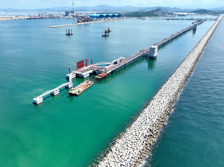 茂名港集團自2012年成立以來,緊緊圍繞“建深水大港、興濱海綠城”的戰(zhàn)略,一步接著一步,以實干興港,把藍圖轉化為實景圖,吸引了一批國內外龍頭企業(yè)落子茂名,逐步形成集群。目前,博賀新港區(qū)4個大型泊位(1個10萬噸級成品油碼頭、3個1~5萬噸級化工碼頭)、4.38公里配套管廊、81萬立方米油品化工庫區(qū)及現(xiàn)代化的港務中心建成即將投用。