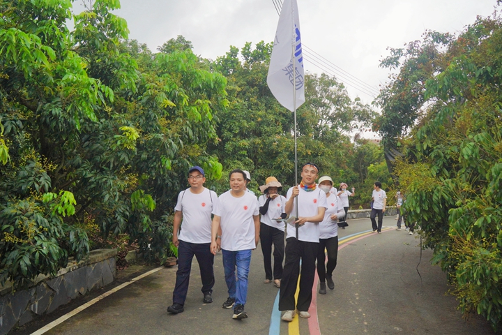 活動當(dāng)天,集團(tuán)員工們身著統(tǒng)一服裝,精神飽滿地參與了全程2公里的文化徒步。沿途,大家熱情投入到彩虹跑、古荔打卡等12項(xiàng)特色活動中。在古荔園內(nèi),員工們重點(diǎn)參觀了七棵千年古荔樹,并積極參與收集以"五世同堂"等古荔樹為原型的定制文創(chuàng)印章。