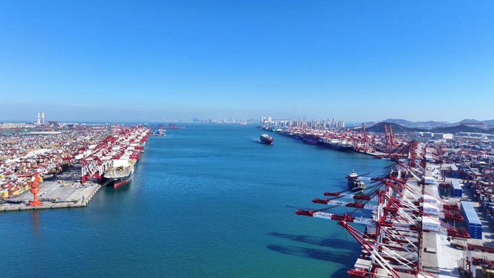 “我們聯(lián)合港口升級‘關(guān)港通’智慧查驗平臺,將涉港作業(yè)的11個環(huán)節(jié)優(yōu)化縮減至3個,單票貨物物流作業(yè)、繳費提離等辦理時間節(jié)省6小時以上,優(yōu)先查驗的鮮活易腐農(nóng)產(chǎn)品、AEO高級認證企業(yè)貨物平均調(diào)運時間縮短5小時,僅青島港區(qū)每年就可為企業(yè)節(jié)約綜合成本約3500萬元!秉S島海關(guān)查檢一處副處長俞挺說道。 此外,青島港將綠色低碳理念貫穿發(fā)展全鏈條,從油電拖輪、氫電拖輪投入使用,到全球首創(chuàng)空軌集疏運系統(tǒng);從高點站位、系統(tǒng)制定綠色低碳轉(zhuǎn)型規(guī)劃方案,到發(fā)布“碳中和”港口評價標準;從規(guī);队眯履茉囱b備,到建成全國港口首座加氫站、全面升級岸電設(shè)施,每一項舉措都充分印證了港口作為國民經(jīng)濟晴雨表,在綠色低碳發(fā)展中的責任擔當。