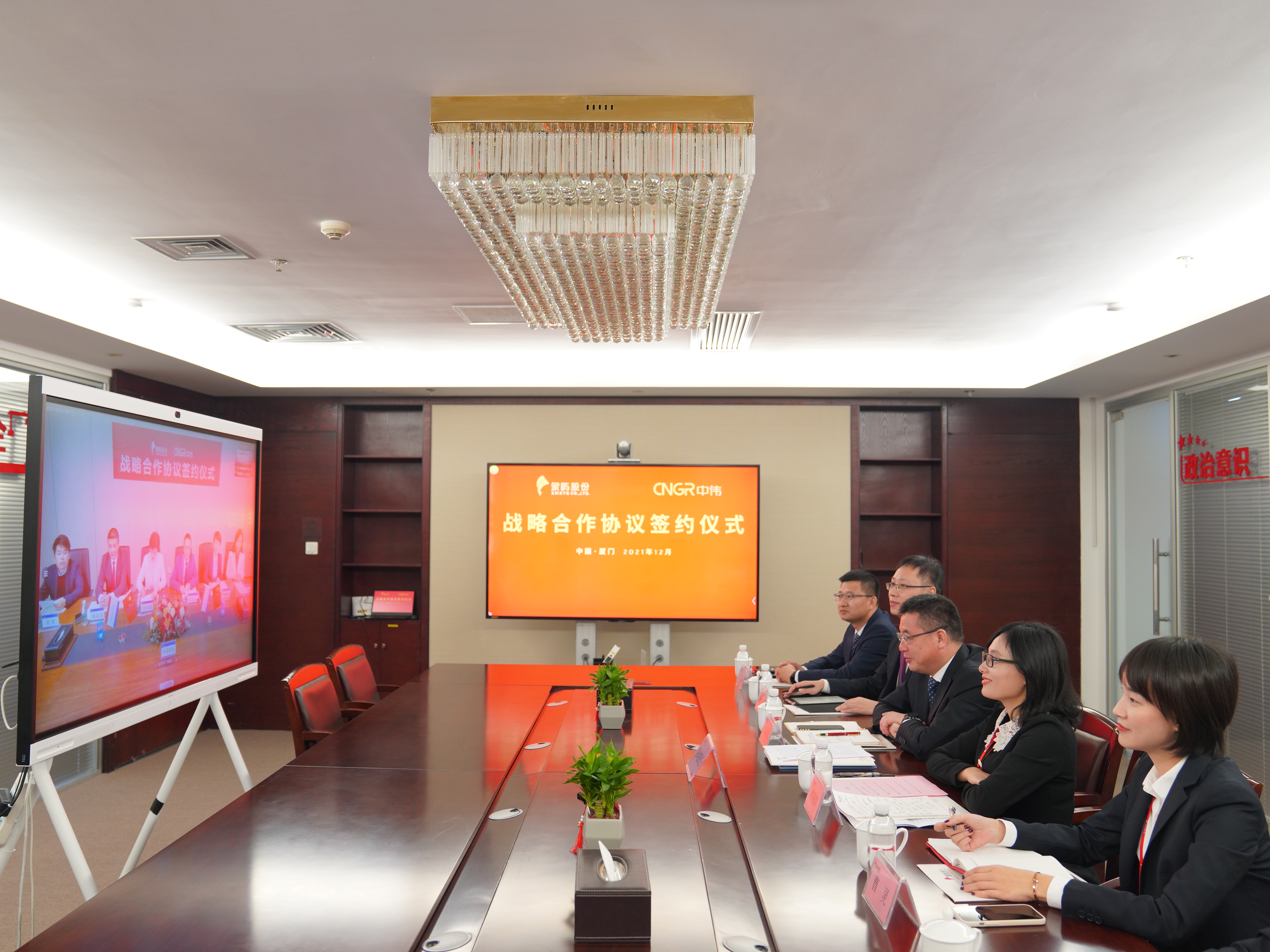 12月15日上午,象嶼股份與中偉股份通過遠(yuǎn)程視頻,在廈門和長沙兩地同步舉行網(wǎng)絡(luò)簽約儀式。在象嶼集團(tuán)黨委委員、象嶼股份黨委書記、董事長鄧啟東,湖南中偉控股集團(tuán)、中偉股份常務(wù)副總裁吳小歌等領(lǐng)導(dǎo)的見證下,象嶼新能源總經(jīng)理林超群、中偉股份財(cái)務(wù)中心總經(jīng)理朱宗元代表雙方“云上簽約”。