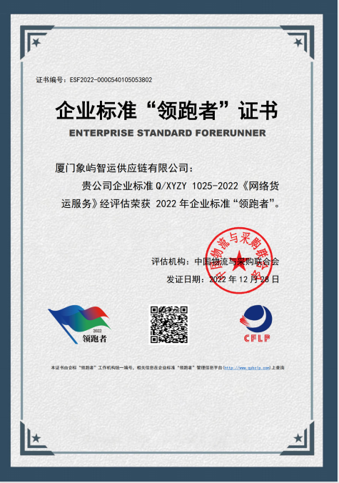 行業(yè)領(lǐng)跑 | 象嶼股份旗下象嶼智運獲評物流服務(wù)領(lǐng)域首批企業(yè)標準“領(lǐng)跑者